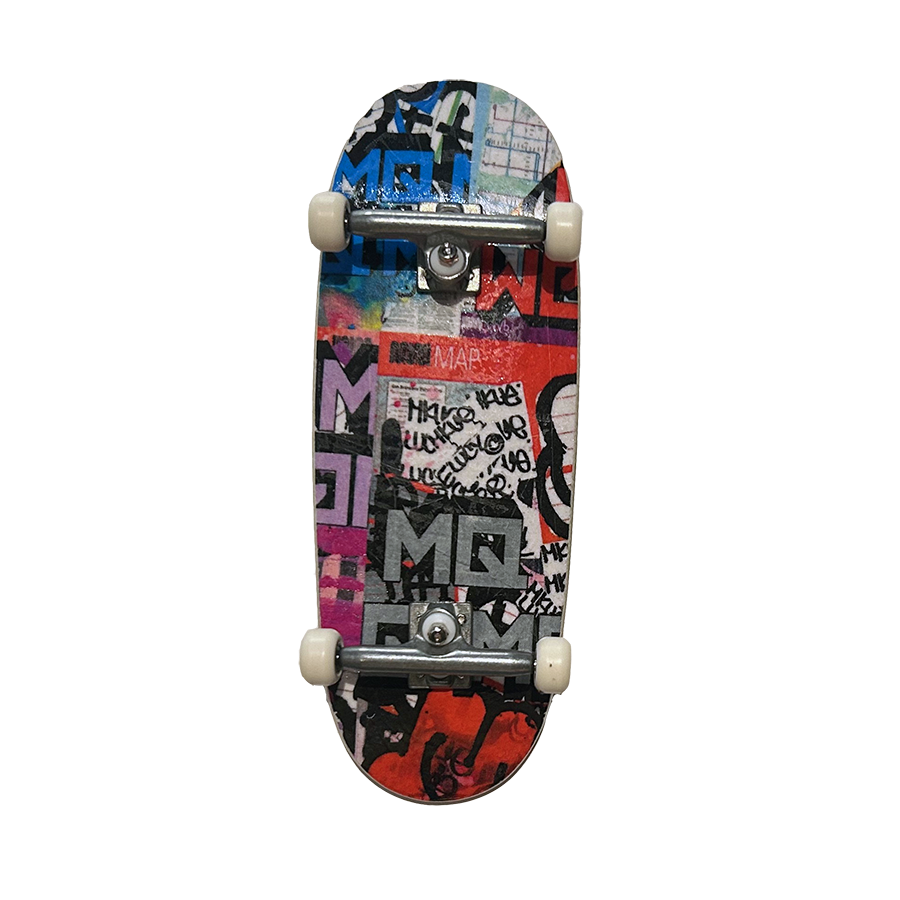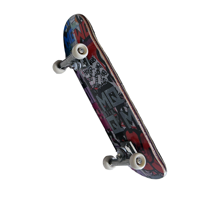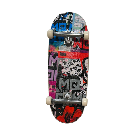 Complete Fingerboard in the "MQ x Low Shop Deck" Graphic. This complete fingerboard is 5 wooden plies finished to perfection. The setup includes all tuned trucks with real 64D urethane wheels that provide the perfect amount of grip. It is topped with our premium fingerboard griptape. Arrives pre-assembled and ready to use. Bottom ply color is random. Truck size matches the size chosen.
