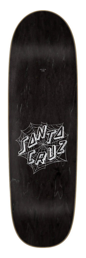 Santa Cruz Skateboards Eric Dressen Spider Pro shaped deck featuring spot matte neon and metallic graphics on 9.25" egg shape with 14" wheelbase.